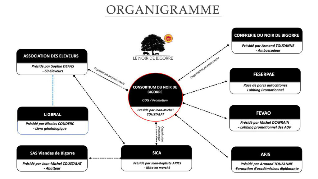 Un groupe d’éleveurs, d’artisans charcutiers et salaisonniers, appuyés par des conseillers techniques, ont collectivement relevé le défi d’organiser la renaissance du porc Noir de Bigorre